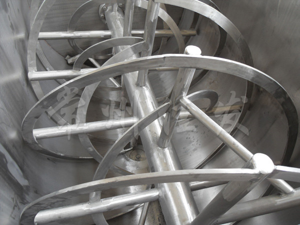 This model is composed of container spiral stirring blades and transmission components. The spiral blades are generally made into two or three layers, with the outer spiral collecting materials from both sides to the center, and the inner spiral conveying materials from the center to both sides, forming convective mixing. The volume can be made into a circular shape for easy clamping and reaction drying.
